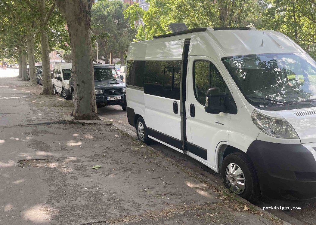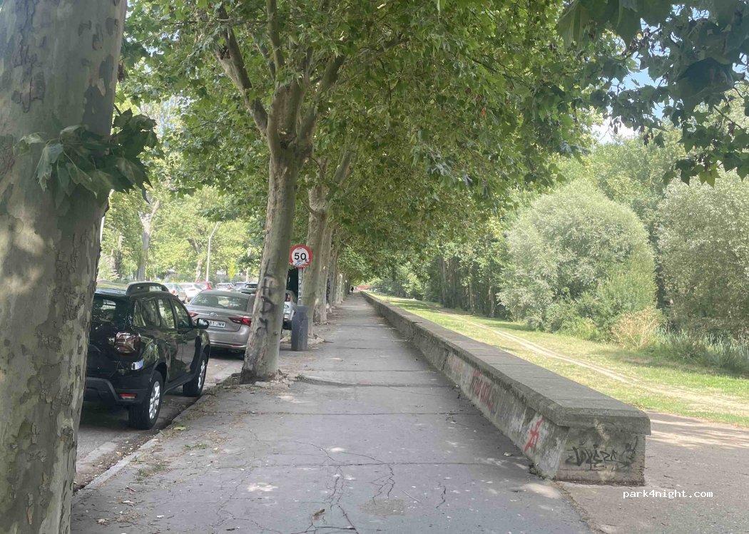 Parking next to the Arlanzón River. Quiet area with no restrictions.