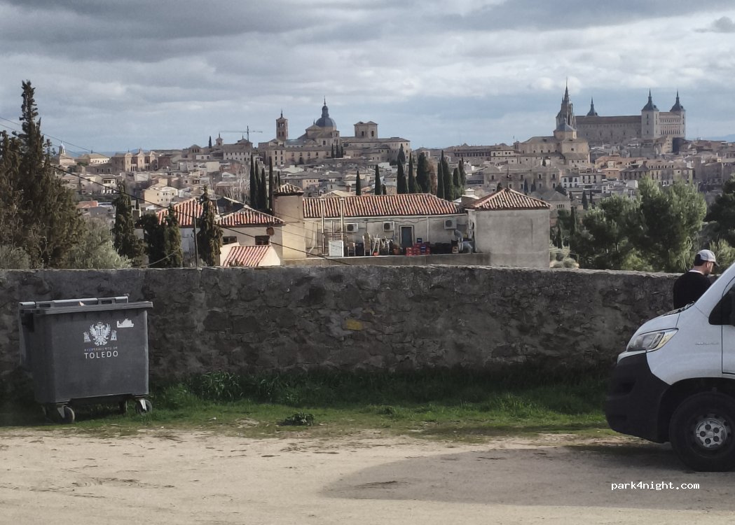 endroit propre sur la colline en face de Tolède. pas de service, mais une vue bien sympathique sur la ville. nous y sommes restés deux nuits sans aucune nuisance. la route est pentue mais accessible aux plus de 7 m
