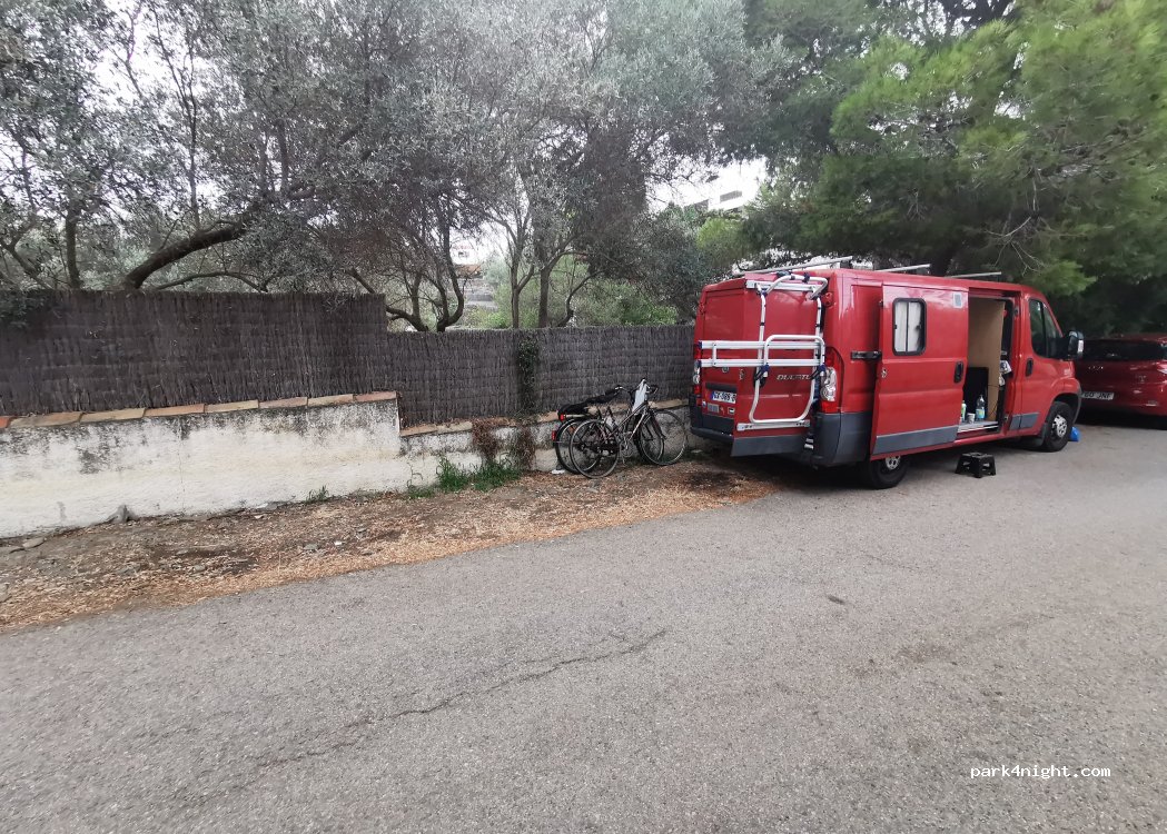 Stationnement le long d'un mur dans quartier calme.... Prévoir des vélos pour rejoindre le centre ville ou de bonnes chaussures.