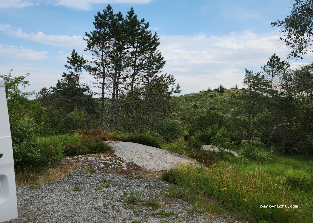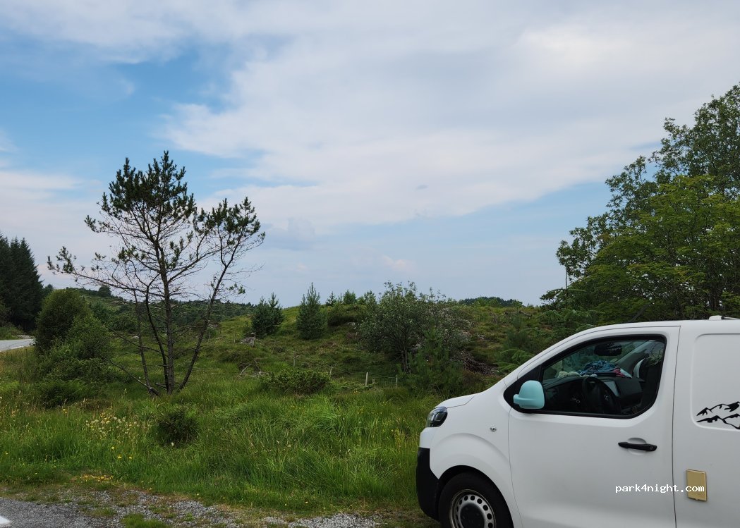 Ruhiger Platz mitten in der Natur für einen Lieferwagen. Nur ein Schild verbietet das Entleeren. Bitte respektieren Sie die Natur. Alle 30 Minuten kommt ein Auto vorbei, sehr ruhige Nacht. Weitere Möglichkeiten auf dieser Straße.