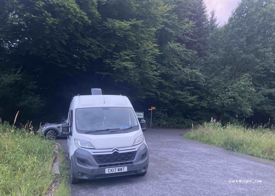 Small parking area for hiking/nature reserve. Lovely forest area alongside not too busy road.