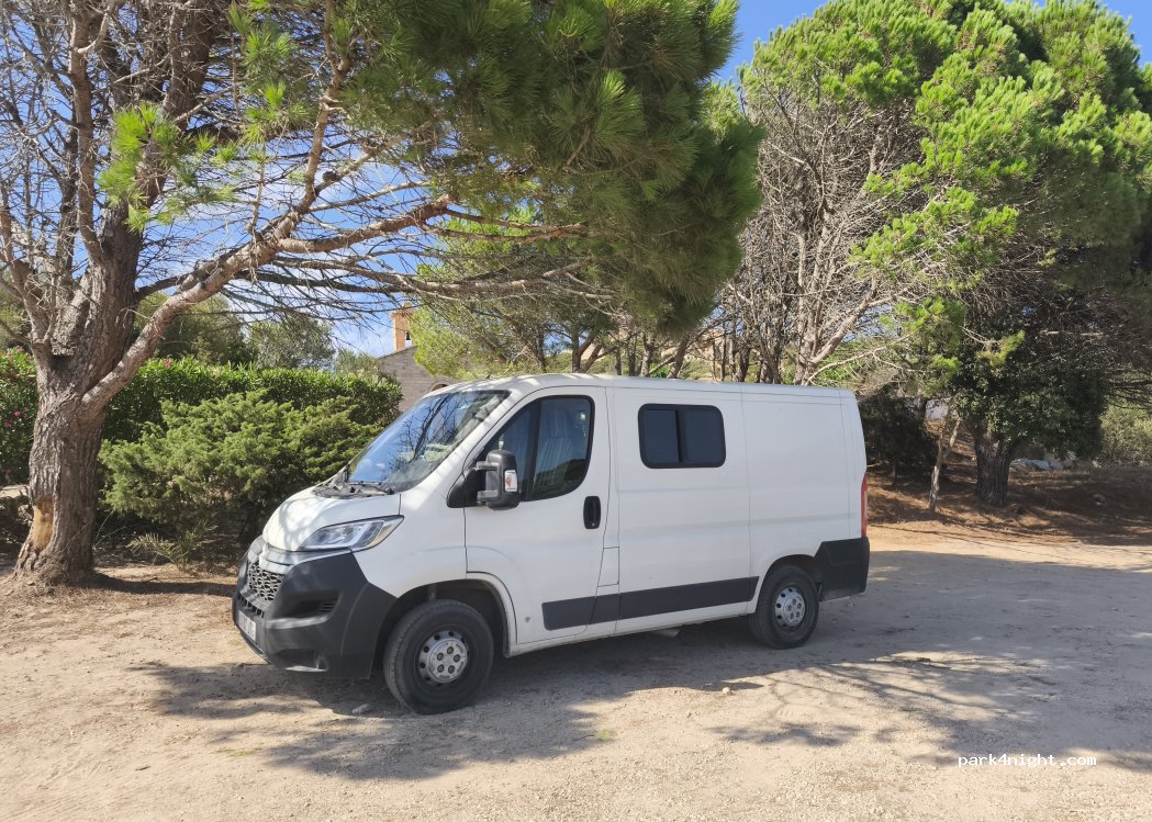 Un'area di sosta lungo la strada, ovvero il parcheggio sterrato di una piccola chiesa. Dispone di una fontanella e di contenitori per l'acqua. Ci sono due alberi che offrono ombra a due o tre furgoni, sia che vi fermiate o che stiate semplicemente usando il bagno.