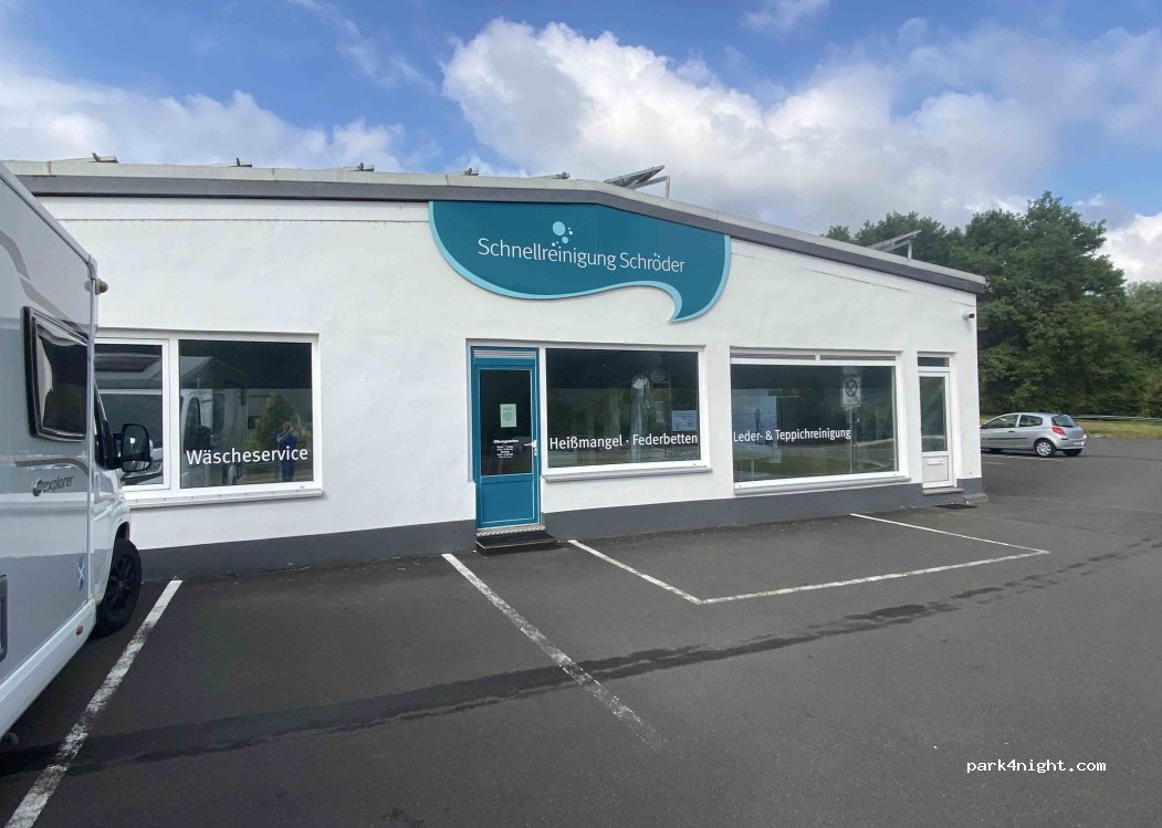 Waschsalon im Service-Stil mit guten Parkmöglichkeiten. Er liegt an einem Kreisverkehr direkt an der Hauptstraße. Öffnungszeiten wie auf dem Foto.