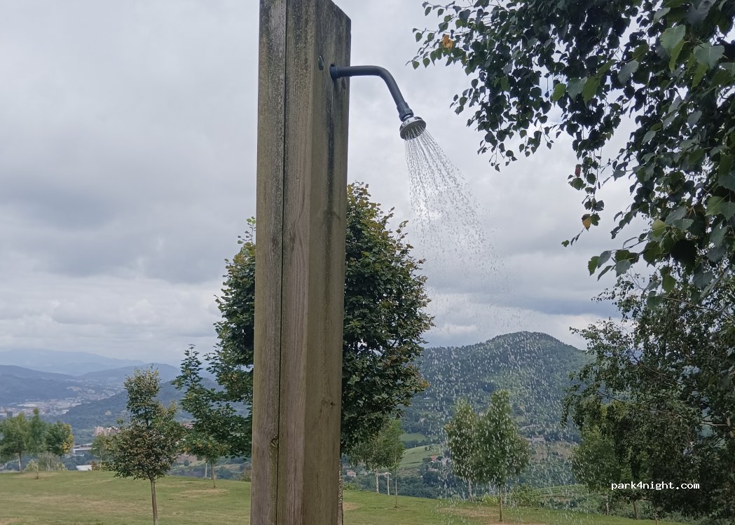 Plusieurs douches en accès libre au sommet d'une colline surplombant Bilbao. Certaines ne fonctionnent pas ; l'emplacement se trouve exactement là où l'une d'elles fonctionne. IMPORTANT : Pour que cela fonctionne, il faut appuyer sur les deux boutons simultanément ! Pour y accéder, il faut se garer un peu plus bas et monter à pied.