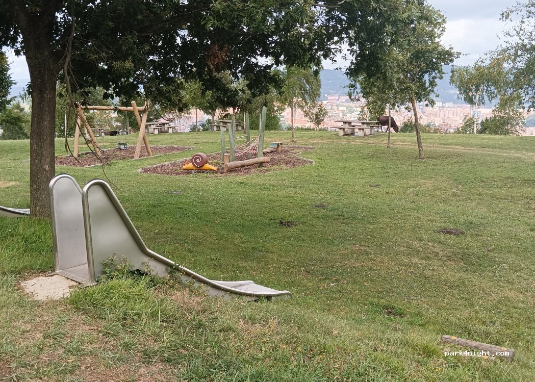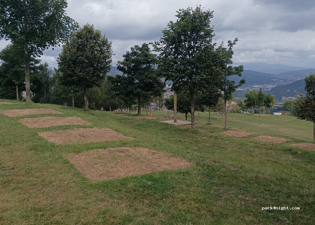 Multitud de duchas de acceso libre en lo alto de un monte desde el que se ve Bilbao. Algunas duchas no funcionan, la ubicación es del punto exacto de una que si. IMPORTANTE: hay que pulsar los dos pulsadores a la vez para que funcione! Para llegar hay que aparcar un poco más abajo y subir andando.