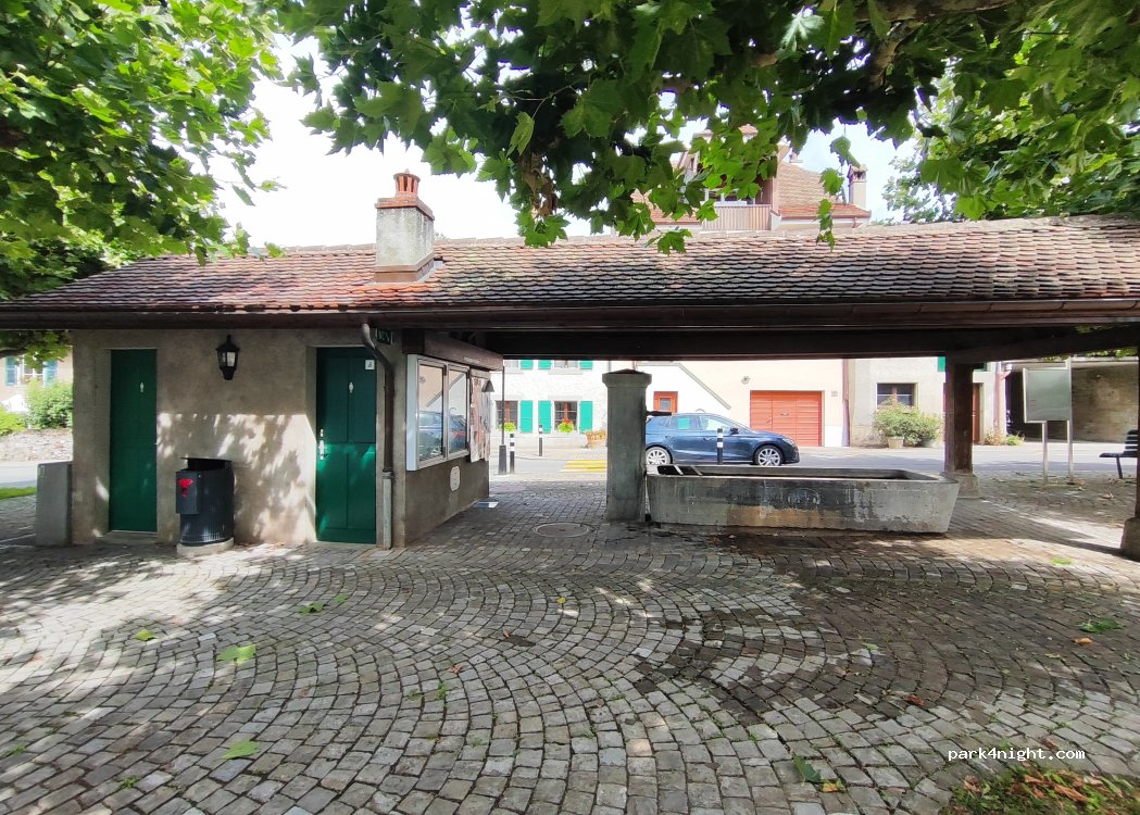 Kostenlose Parkplätze neben sauberen öffentlichen Toiletten.