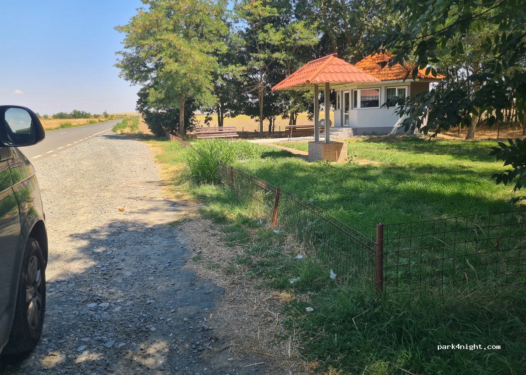 Un arrêt ombragé en bord de route. Au milieu de rien. Aucun aménagement, mais bienvenu pour le repas à l'intérieur du van.