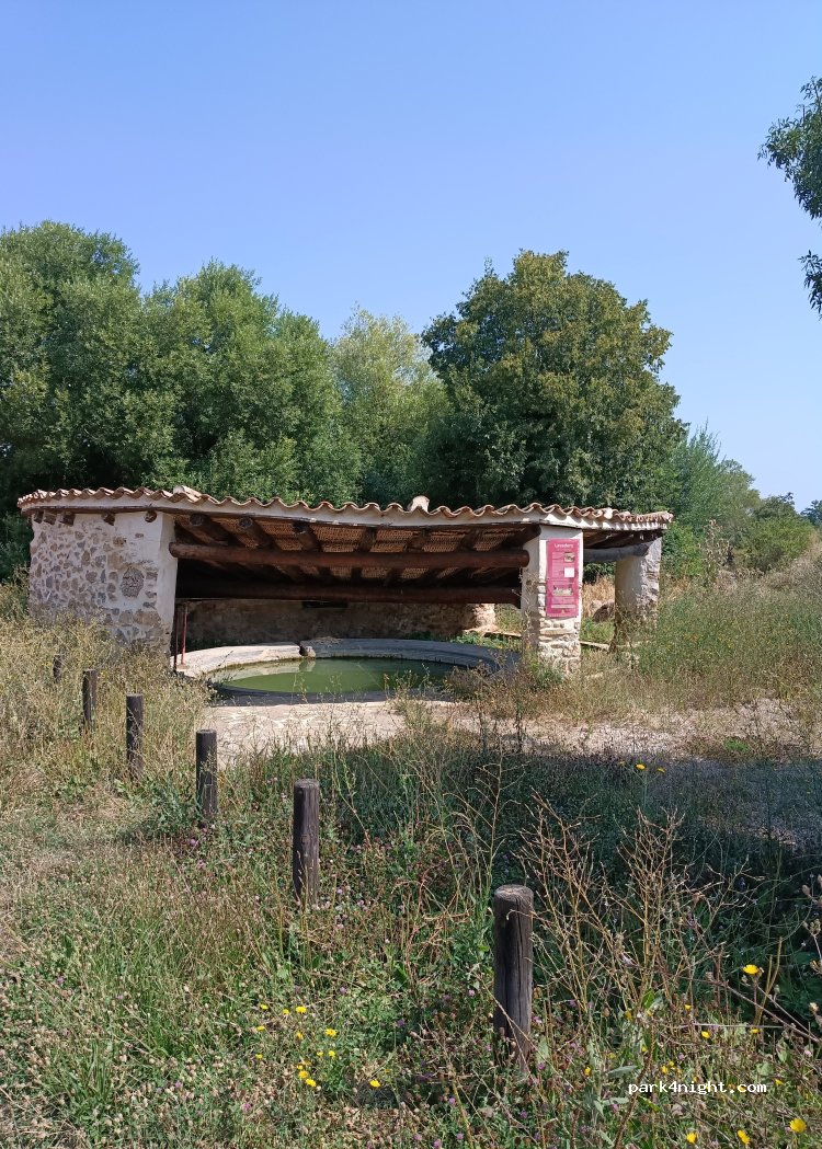 Es un lavadero precioso con forma redonda, tiene una mesa de picnic lugar bonito