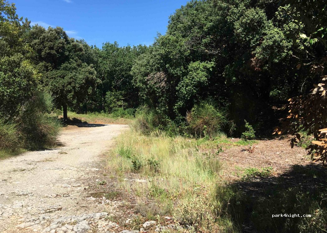 Accès très facile en bord de route, qui la nuit ne comporte aucune circulation. Au lieu de rester sur la grande partie plate, nous avons accédé sur la droite au fond, en marche arrière, dans un petit recoin sous les arbres, pour van seul, car très étroit. 2 nuits passées dans le calme et un ciel étoilé. L'abbaye de Valbonne, pas très loin, magnifique de l'extérieur, délabrée dedans... triste !