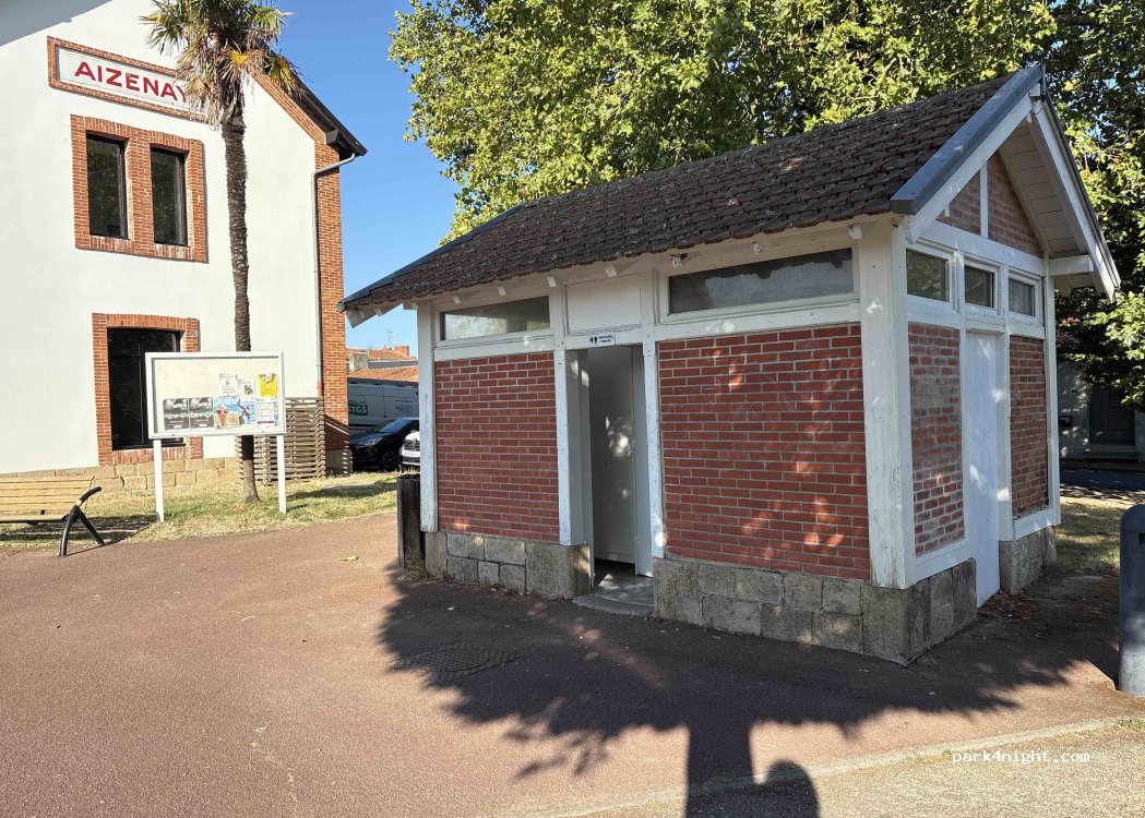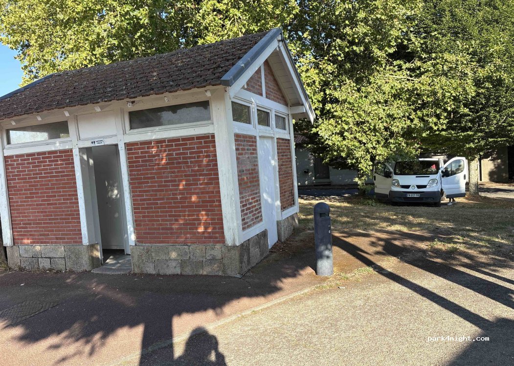 Près de l’office de tourisme, endroit calme , toilettes publiques ouverte et propres.