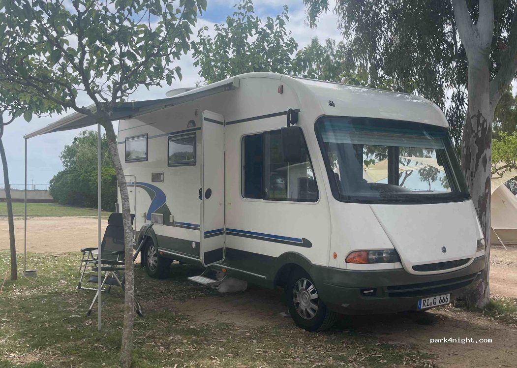 Nice, clean and very friendly small campsite. A unique base for exploring the nearby lagoons and ricefields by bike. Good for birdwatchers. Chose one of the parcels behind the servicehouses, put up the scope next to your outdoor morningtable and enjoy hoopoes, ibisses, marsh harriers, waders and many more birds. Two nights in camper, two pers and with electricity: 41,8e. Don't forget repellent!