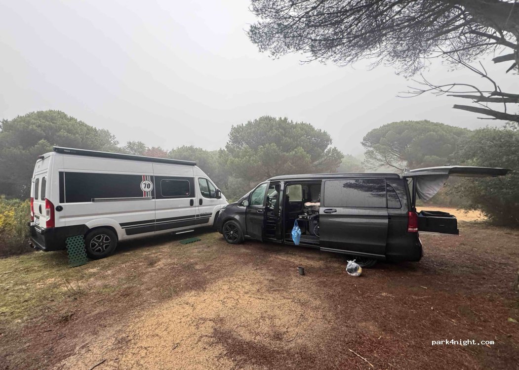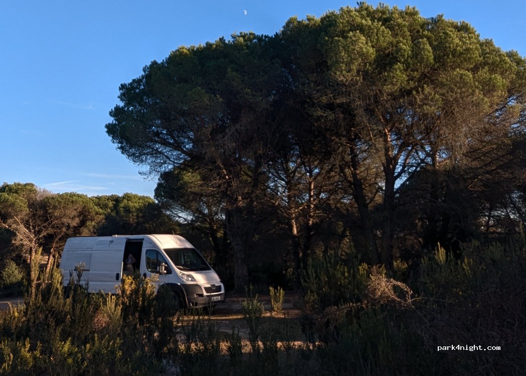 Très calme, au milieu des pins, nous étions 4 véhicules, il y avait encore possibilité d’en mettre 2 autres. Lieu de randonnée. C’est accessible par un petit chemin étroit, possible pour van, fourgon mais pas un camping car.