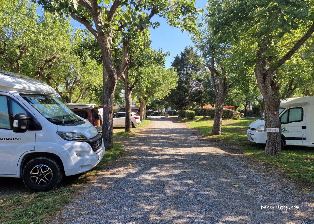 places assez grandes bien délimitées. ombragé mérite d être juste à côté de la plage.centre accessible part la plage a pied ou sur pistes cyclables. le gros reproche par de vidage et remplissage pour les eaux sales. possibilité de vider a l air de camping car juste au dessus et de payer 2euros pour remplir l eau 49 e pour un camping car 2 adultes 2 enfants sans électricité.