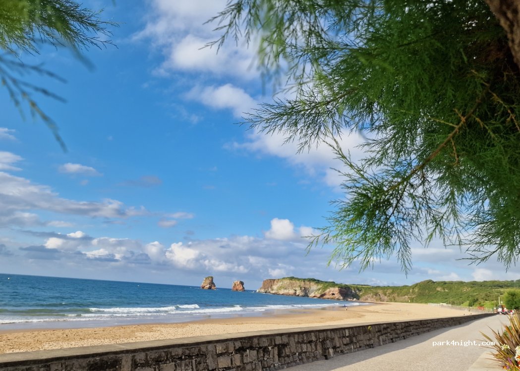 55€ la nuit pour camping-car 2 adultes 3 enfants et électricité. À proximité des plages, du château d’Abbadia, du centre ville, pistes cyclables, maison de la corniche (exposition géologique très bien faite et super pour les enfants). Bateau-taxi qui vous emmène en 5 minutes à Fontarabia en Espagne pour manger des tapas ! L’intérêt du camping est son emplacement et sa proximité de la ville. Camping en espalier et attention certains emplacements sont en pente.