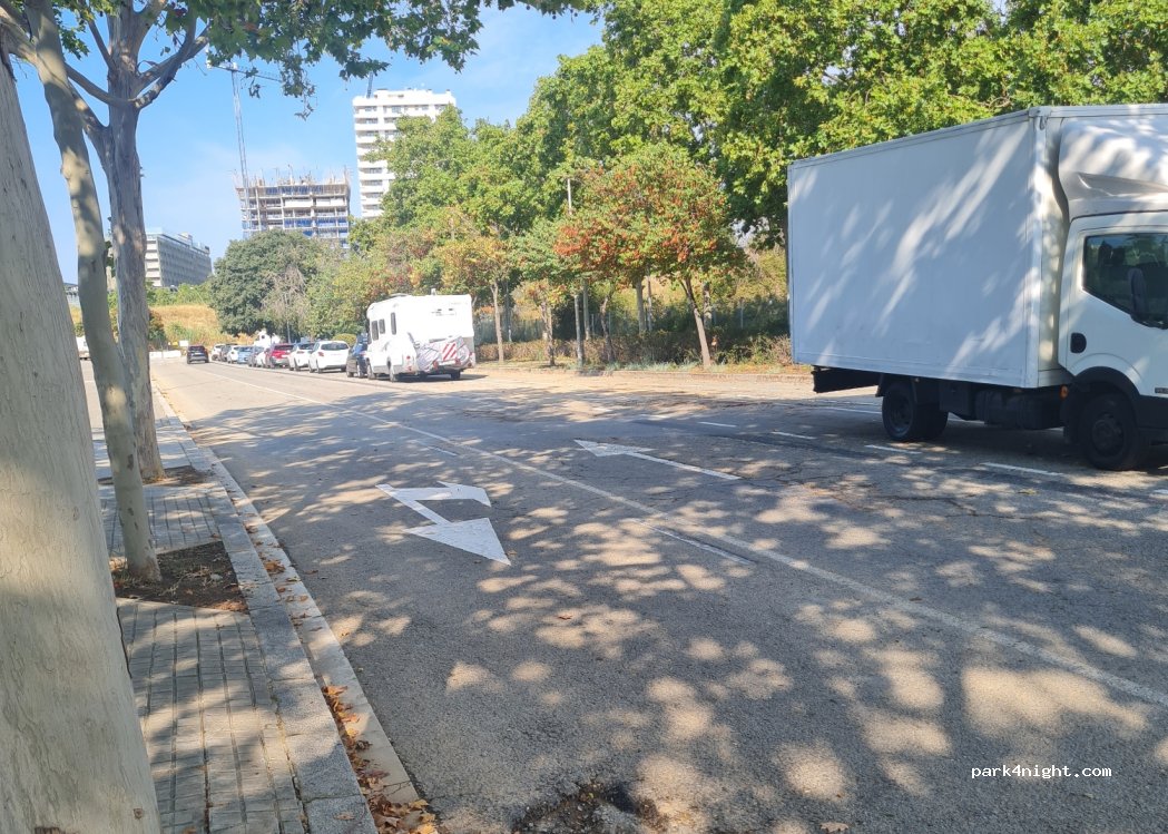 Places de parking en nombre autour de ce point , proche université,piste cyclable direct . 8km de piste velo de la zone piétonne hyper centre et 7 km de vélo en ligne droite de la sagrada familia. on a plusieurs zone de stationnement gratuites sans limite de temps autour de cette rue . il y a aussi des places zone verte 2 heures dans la même rue à quelques mètres. Ce n'est pas une rue passante mais je ne dormirai pas non plus la ,c'est le long de la route .c'est juste une zone de parking pour les véhicules long pour pouvoir visiter Barcelone