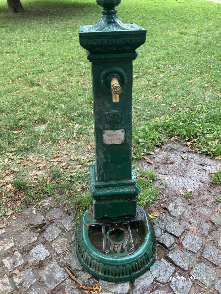 Park mit mehreren Trinkwasserbrunnen, sind angeschlossen (August). Explitzit als „Pitna Voda - Drinking Water“ gekennzeichnet. Jedoch etwas im Park, daher ein Stück zu laufen mit Kanister.