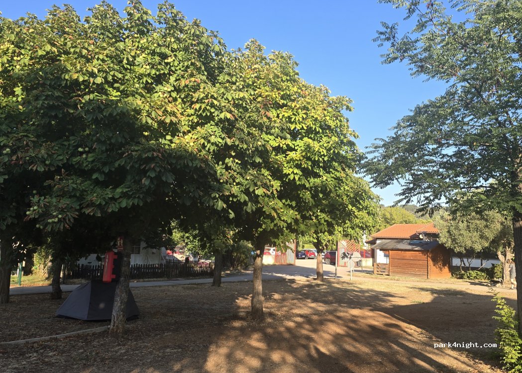 Es un camping en que casi todas las parcelas son de residentes fijos en casas prefabricadas. Lo lleva el ayuntamiento y hay que llamar al teléfono del ayuntamiento para reservar. El recepcionista es muy amable. Las piscinas son muy grandes y limpias (hay que pagar 2,5 € si se usan). Tiene un bar con comidas baratas y aceptables y miy bien atendido. Los servicios y duchas muy antiguos. Es muy tranquilo y familiar. El pueblo está a 10 minutos y es muy bonito.