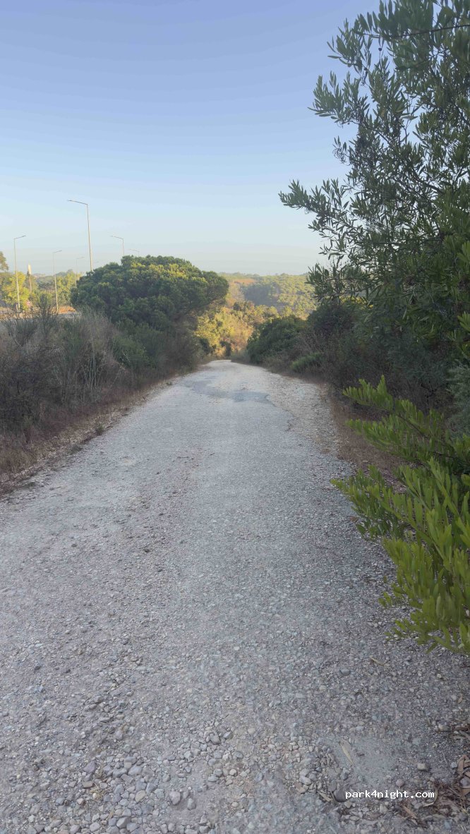 Zone P is lower down. We had dinner and spent the night. In the morning, the GNR arrived, greeted us, but didn't say anything. It's a quiet parking lot next to the river below the bridge. We tried the one above, which is also flat, but cars kept passing by, so we decided to go there. It's a rough dirt road that seems steep, but with the 7.60m AC, we made it down and up just fine.