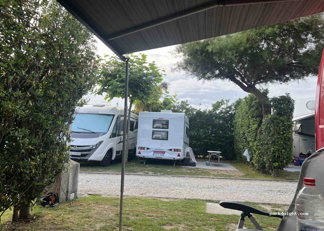 Mooie camping met schaduwrijke plekken voor campers, caravans of tenten. Plekken wel dicht op elkaar maar goed afgescheiden. Je krijgt WiFi-code maar alleen goed te gebruiken rond receptie/ bar/ restaurant. Sanitair is prima. Fantastisch strand tegenover de camping. Eén nacht met 2 volwassenen en 2 kinderen €46.62 incl. stroom.