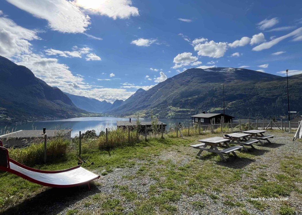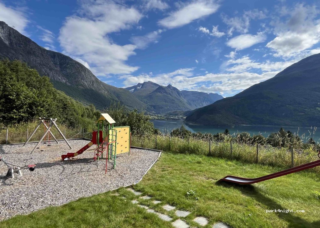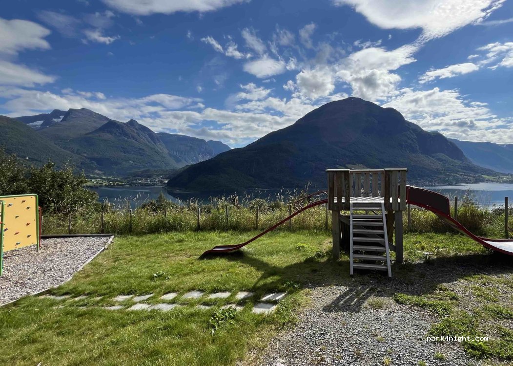 Playground with 3 picnic tables. Parking perhaps 1-2 smaller RVs possible. Great for the kids. Stunning views. No sleeping allowed as btw houses.