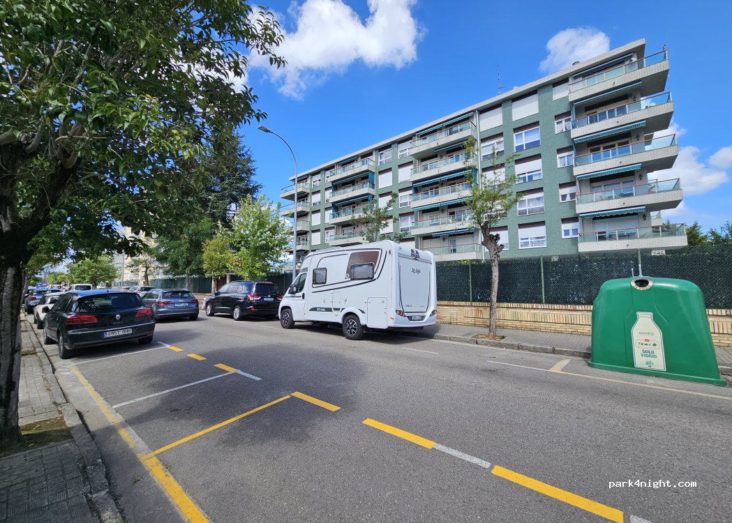 Calle con espacio justo y suficiente para aparcar. Para ir a la playa y visitar la ciudad. No hicimos noche. Mucho tránsito. No hay señales de prohibición. Cuidado con las ramas de los árboles.