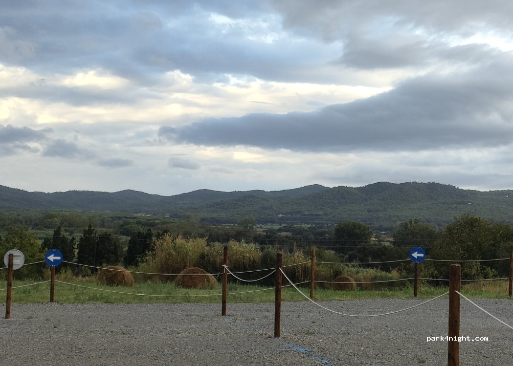 New parking lot 50m from Pals town hall. Away from the main roads, with a view of the old town on one side and green landscape on the other. It is more of a campsite for vans or classic vehicles, given that there is a specific parking lot for camper vans at the entrance to the village.