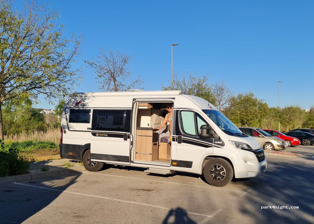 Nous avons dormi 2 nuits pour visiter Ecija. Parking légèrement en pente mais bien avec les cales. Il faut se mettre vers le milieu du parking car il se remplit aux 2 extrémités la journée et la nuit. Il n’est jamais plein. Le vendredi et samedi soir des jeunes viennent écouter de la musique comme très souvent en Espagne.