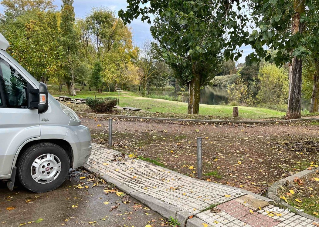 Plenty of level paved parking with capacity for 5 motorhomes, which is accessed by an unpaved road in good condition. Next to the Tormes River, with access road and picnic trails.