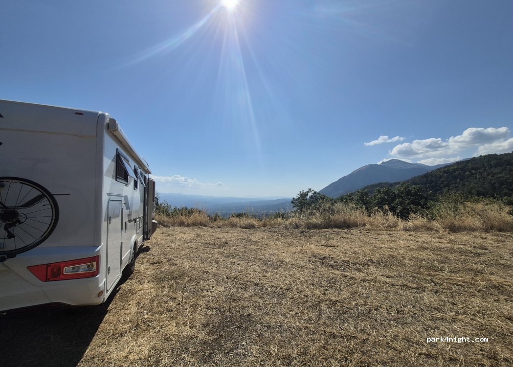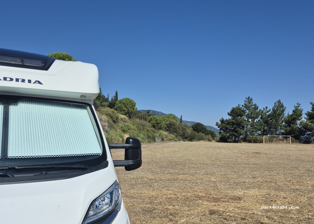 Ein toller Wohnmobilstellplatz außerhalb des Dorfes Georgitsi. Es handelt sich um einen alten Fußballplatz mit hervorragender Zufahrt für große Wohnmobile und einer tollen Aussicht!