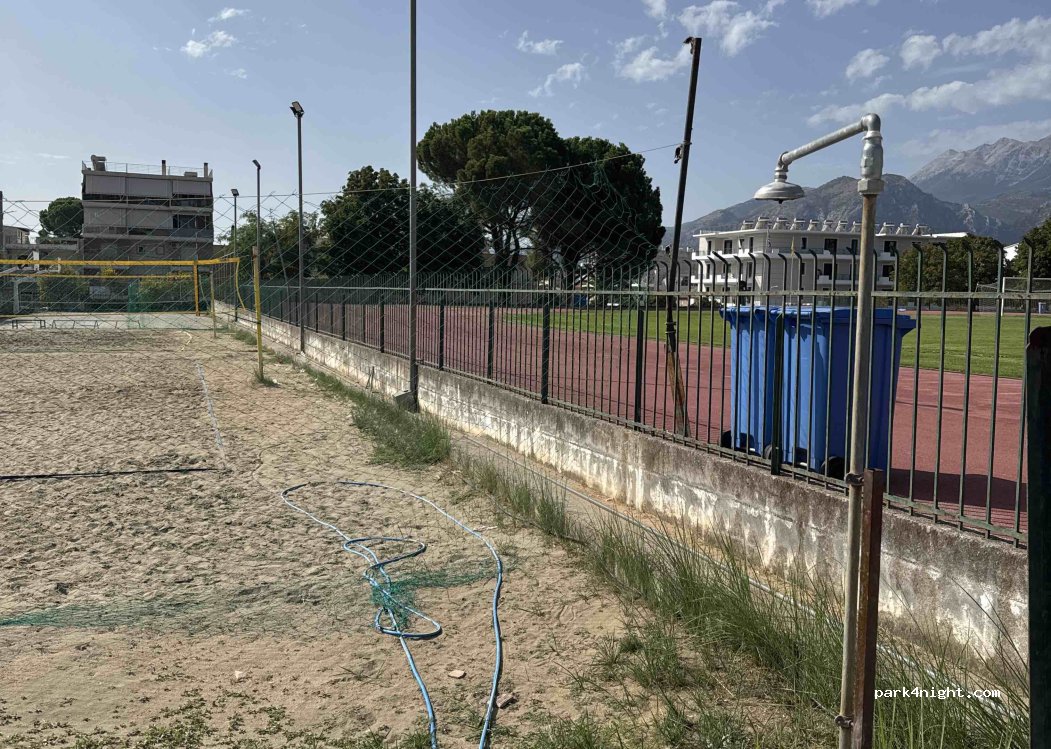 Un lugar estupendo entre los altos y frondosos olivos, junto al estadio, protegido de la carretera. Muy tranquilo por la noche. Duchas al aire libre en el estadio, junto a la cancha de voleibol. Pasamos una noche tranquila y nos sentimos seguros.