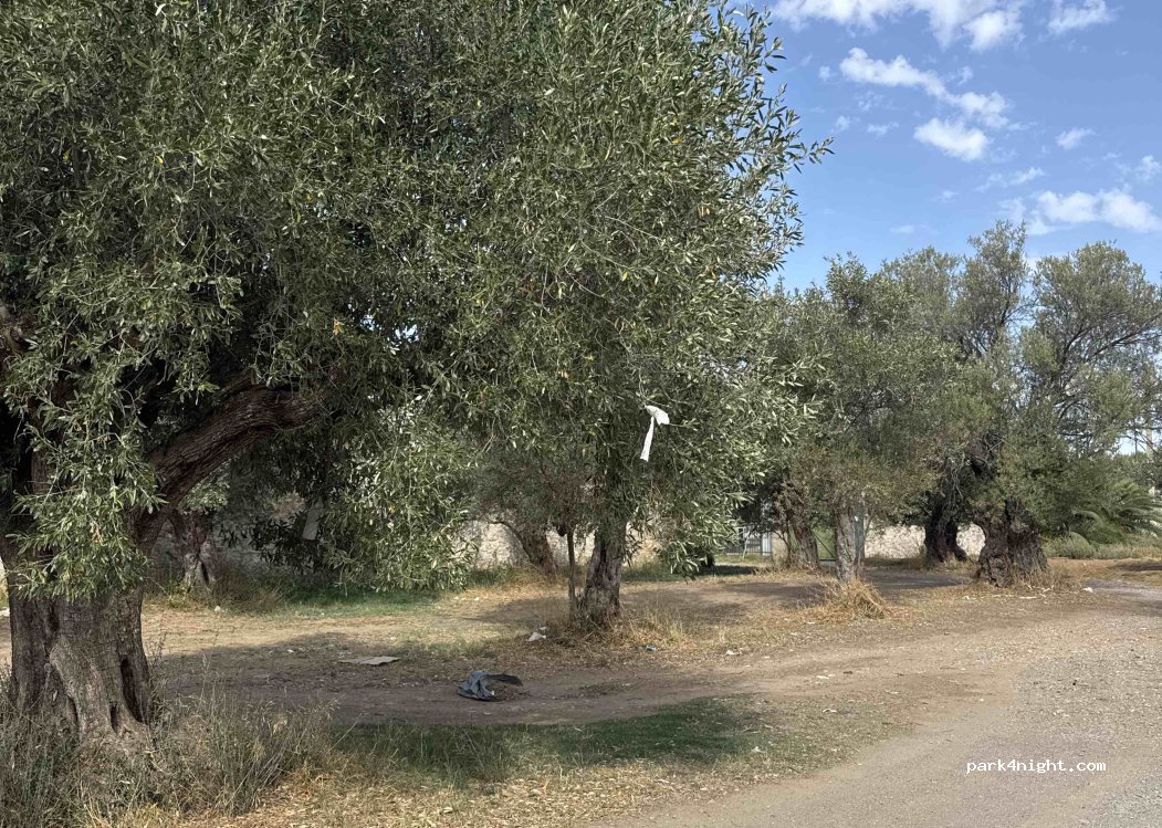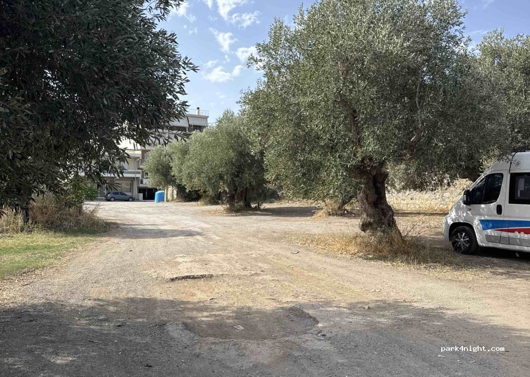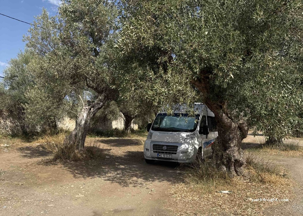 Emplacement idéal au milieu des grands oliviers ombragés, à côté du stade, à l'abri de la route. Calme absolu la nuit. Douches extérieures disponibles dans le stade, près du terrain de volley-ball. Nous y avons passé une nuit paisible et nous nous sommes sentis en sécurité.