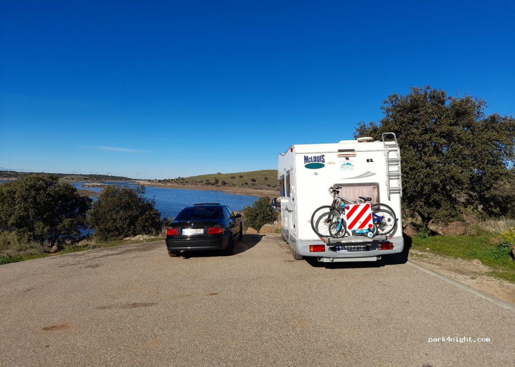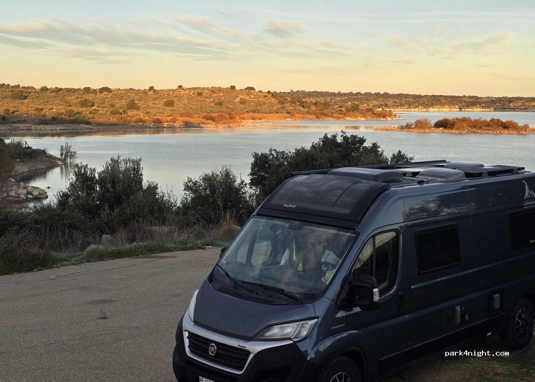 Zeer rustige plaats aan de oever van het Guajaraz-stuwmeer. Je kunt de parkeerplaats langs de weg dichter bij het water plaatsen, maar aan het einde van de weg is er een kleine asfaltrotonde. Totale rust