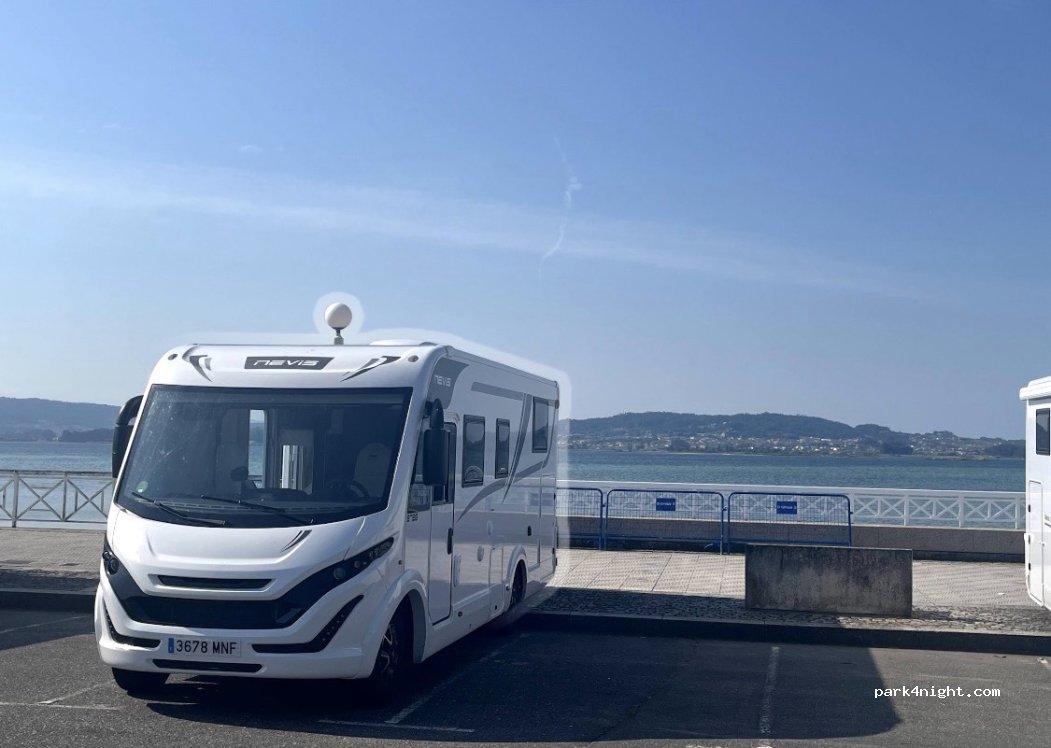 Parking spaces are small, but the view is nice and it is close to all the attraction in Toxa island: The Hermitage Of Toxa, The Illa Da Toxa Springs Museum-Store and the Monte de A Toxa park which is very nice shadow and we'll mantinied. On day it is quite busy but on night quiet. There aren't any service except few garbage bins at the entrance of the parking, but campers can park for free!