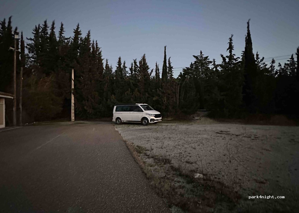 Parking de la piscine municipale. Nous sommes restés ici la piscine étant fermée également. Grand parking.