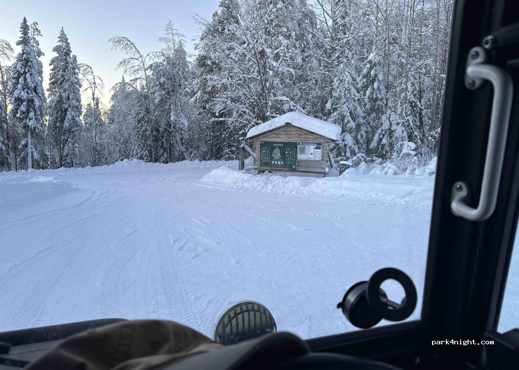 Invierno 2026 de un pequeño aparcamiento en la carretera.