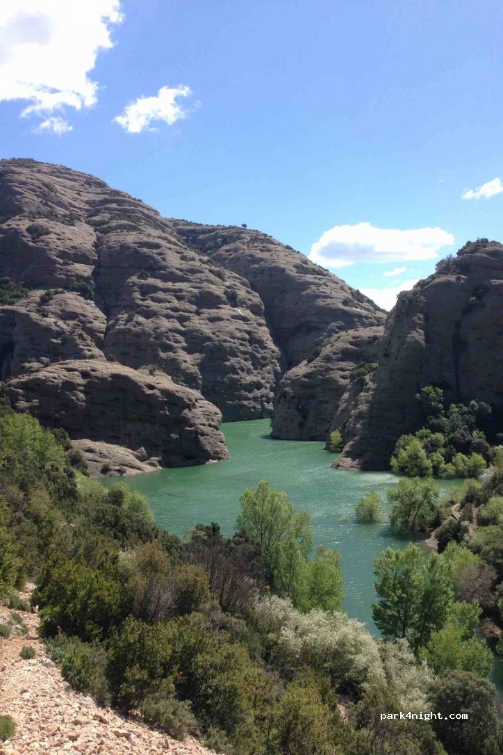 Franjas idílicas gratuitas del parque en las inmediaciones del embalse y escalada en roca en el parque nacional. En fuertes vientos y lluvia, riesgo de caída de rocas