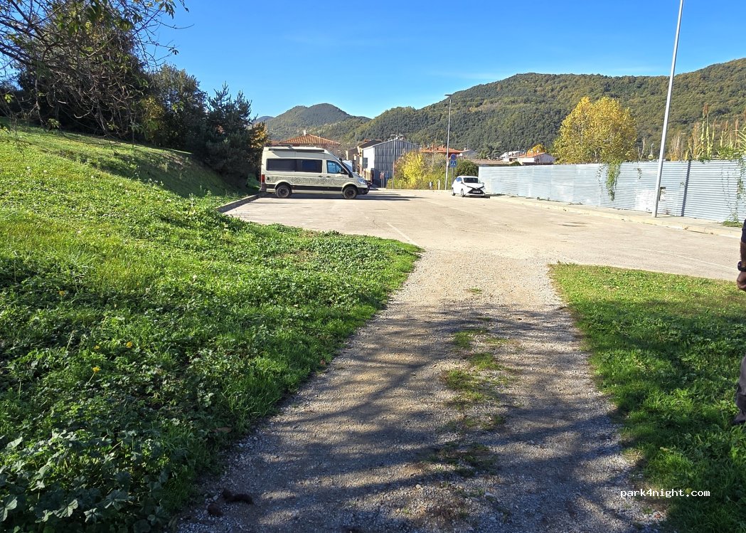 Lugar simple para pasar una noche. Se trata del final de un aparcamiento en una zona residencial con una pequeña zona de césped con dos bancos. Pasamos la noche junto a una autocaravana muy tranquila y sin ruidos.