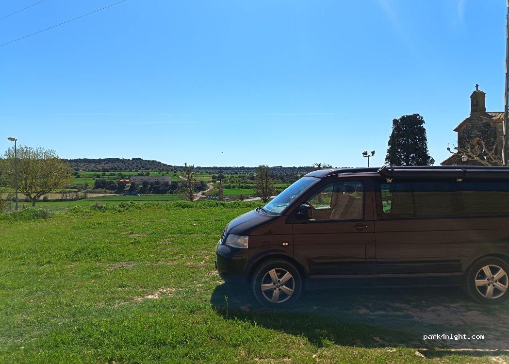 Place de parking au abord d'un petit village. table de pick nique et robinet d'eau a proximité. Legé bruit de la route au loin.