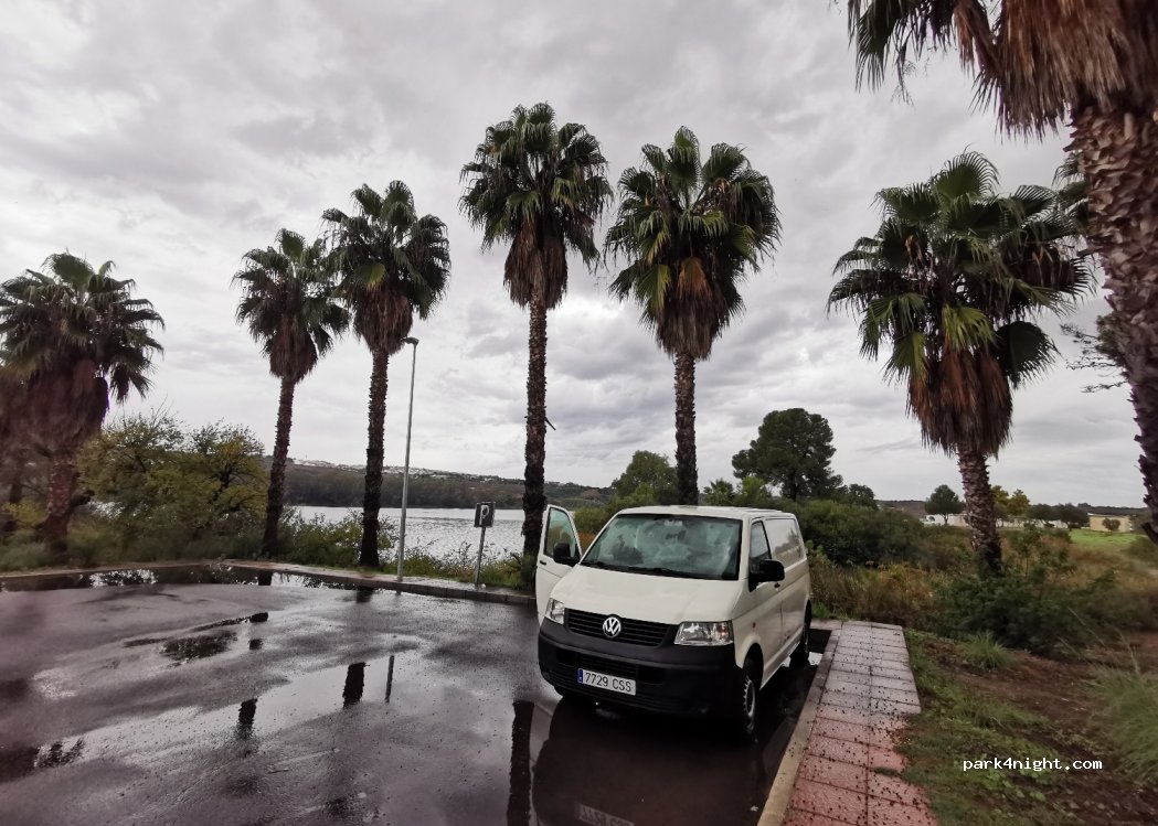 Au bord du lac. idéal pour une nuit . pas de service mais une vue sur arcos. plusieurs places entre les palmiers.