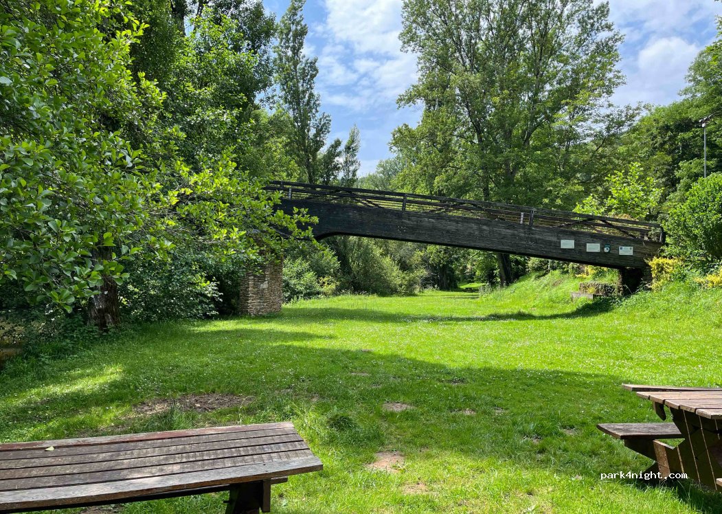 No se puede pernoctar, solo para el dÍa ! es un parking de pago desde las 7 am hasta las 7pm creo, está al lado del rio y tiene unas mesitas de picnic además de una zona con agua y fregadero, el sitio es agradable, ojalá se pudiera pernoctar…