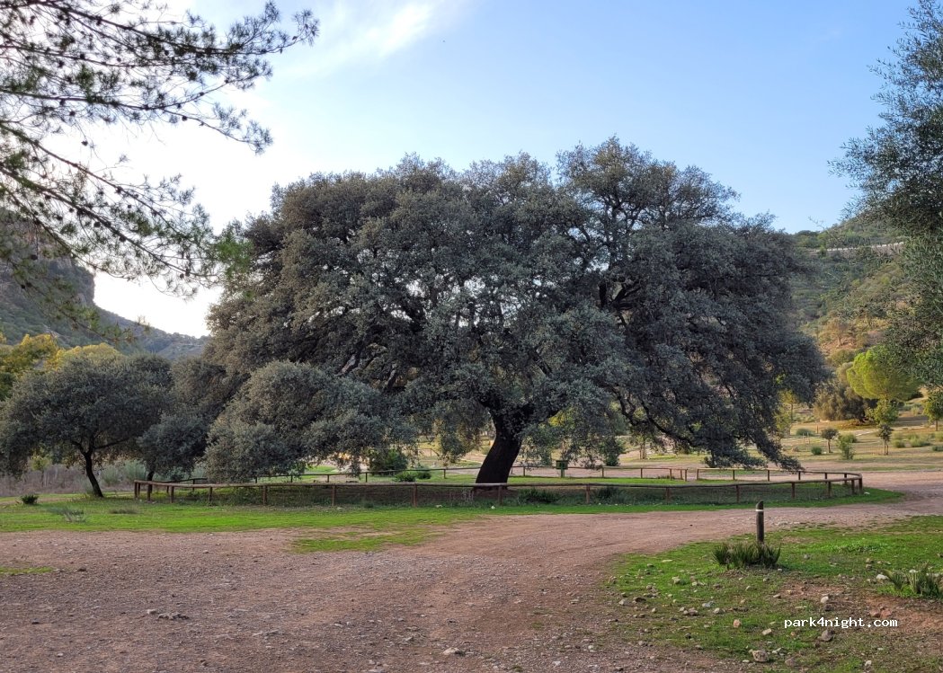 This is my favourite park up ever. The most beautiful peaceful scenery during the week, only other people here were a few other campers. The police will come and tell you to park inside the fenced area though. However, the weekend is different, it fills up with loads of local families, cooking and chilling, more of a festival vibe. The amazing tree is Spain's tree of the year 2024!
