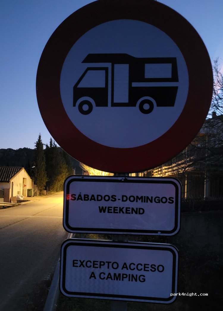 Vous ne pouvez vous garer ici que pour accéder à beceite et grill, la nuitée est interdite. L'accès à la ville, Parrizal et Pesquera avec le camping-car est interdit du 22 juin au 16 septembre