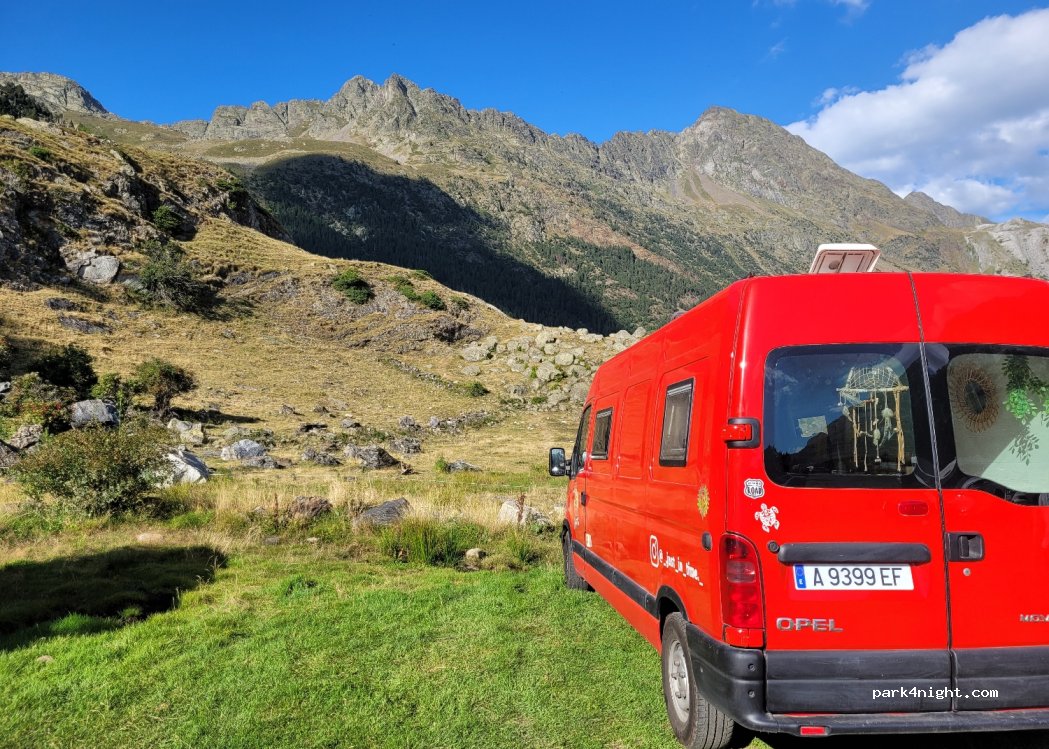 Un lugar hermoso e inicio de muchas rutas. Estupendo para aparcar de día y disfrutar de todo lo que el Valle de Benasque te ofrece. Pero por favor, recordar que no se puede pernoctar. Hay muchos lugares alrededor donde si puedes ir sin problemas
