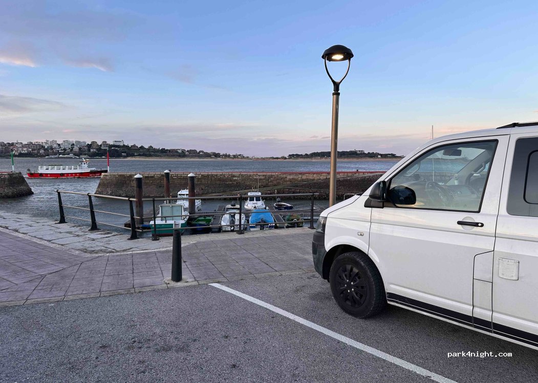 Spot vraiment sympa avec vue sur le port, assez calme. Nous avons cependant eu beaucoup de passage jusqu'à 00h, des pêcheurs, jeunes etc.. La police est venue mais n'a rien dit, nous n'avions pas sorti le matos de camping. Bien pour une nuit