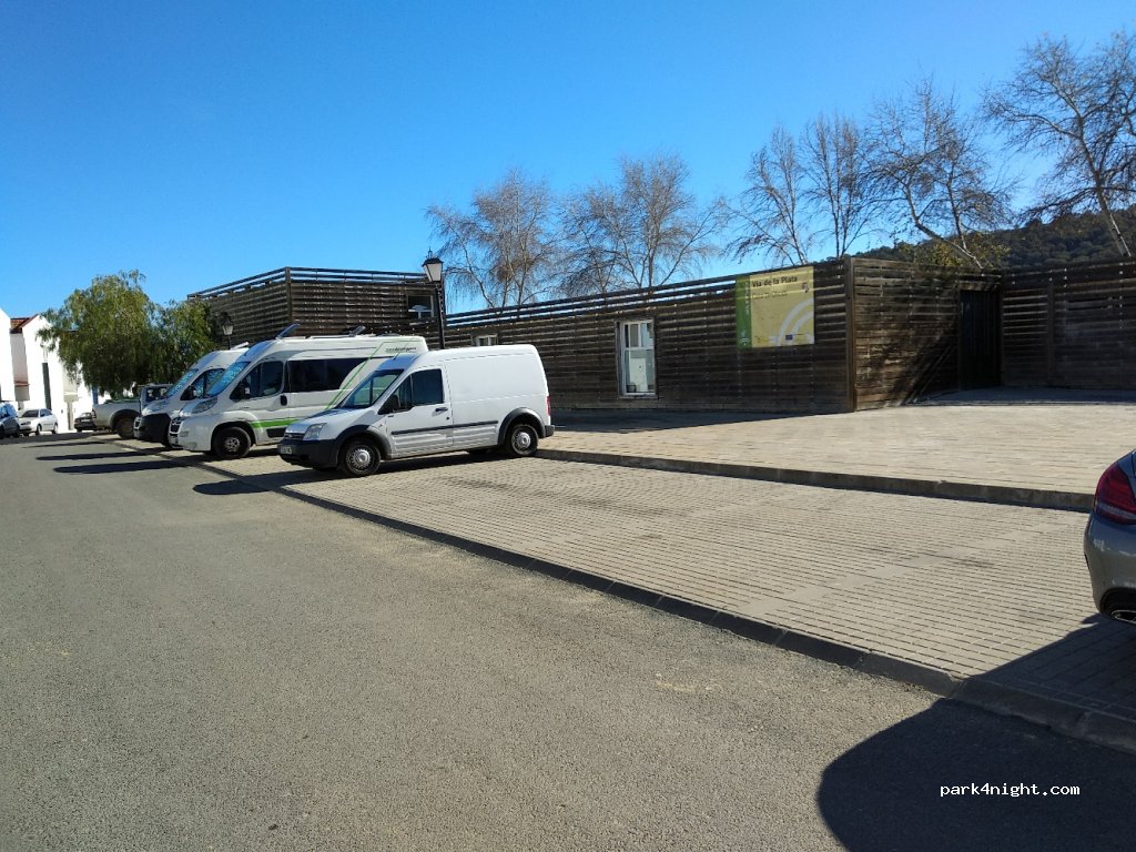 Kleine, vrijwel horizontale P aan de rand van het dorp. Verhard, korte vakken (maximaal 6 meter), geen voorzieningen behalve een prullenbak. Waarschijnlijk heel rustig, maar wij waren er met de Romería en toen was het er in de avond en nacht zeer luidruchtig.