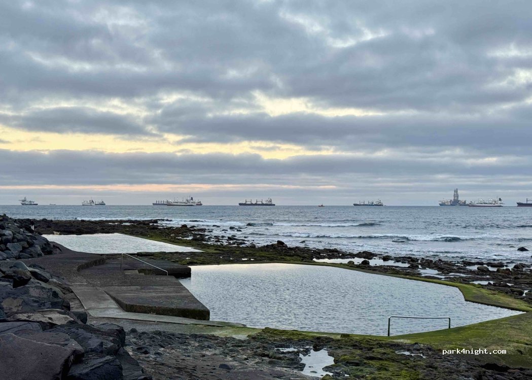 Gut um tagsüber das Fahrzeug abzustellen, wenn man den Tag am Strand verbringen möchte. Die 6-spurige Straße und der Fahrradweg liegen leider zwischen Parkplatz und Strand. Zum Schlafen und sich dort aufzuhalten ungeeignet. Dreckig, uneben, unbefestigt, schmuddlig, laut.