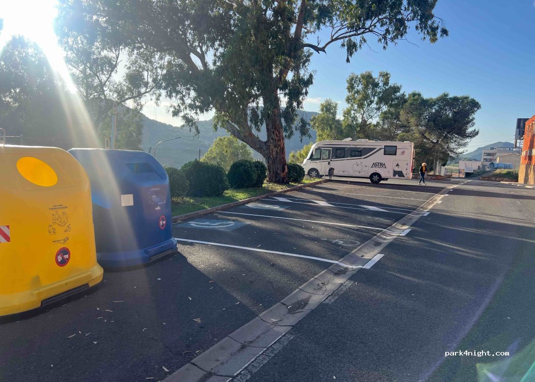 Es un aparcamiento junto al museo de la minas de Almaden . con sombra . Es una verdadera pena que no tenga fuente y descarga para aguas grises. Preciosas vistas de pinar y al antiguo polvorín de la mina , hoy ya inactivo . Almaden tiene posibilidades de ruta de senderismo preciosas y carreteras para darse bonitos paseos en moto. Visitenlo merece la pena sus productos caseros.