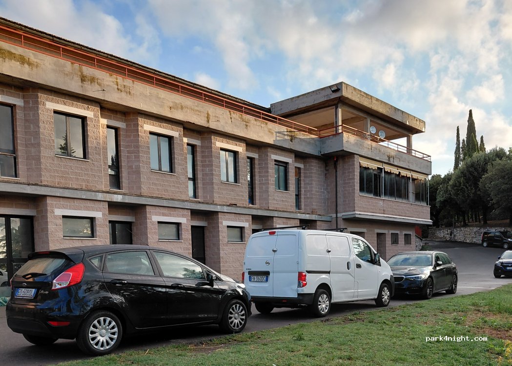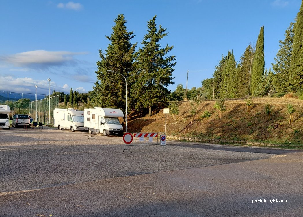 Ampio parcheggio a 500metri dal centro del paese. Zona tranquilla e rilassante con una bellissima vista sulle colline. Segnalato come parcheggio per camper dotato di fontanella, carico e scarico. Consigliatissimo!!