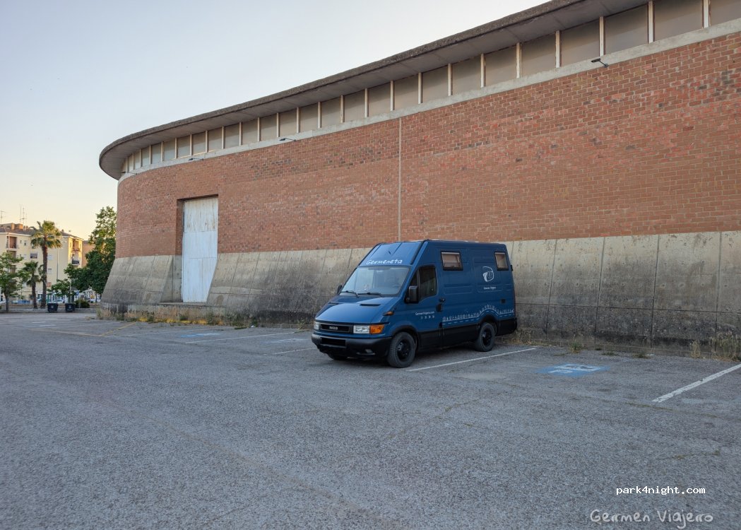 Aparcamientos del polideportivo de Zafra. Tiene aseos. Muy cerca del centro para pasear por el pueblo. Único inconveniente q se encuentra junto a la carretera nacional y el nivel de ruido es alto.