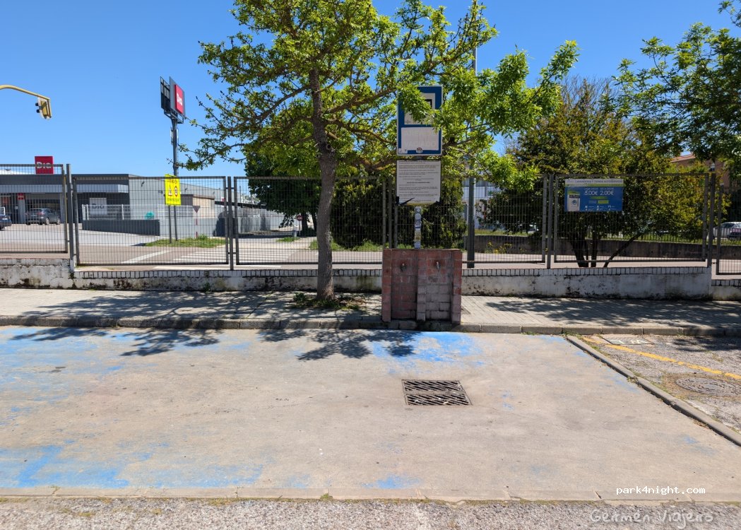 Returned for second time as it's a great spot to stop when traveling north from Southern Spain. Large spaces for motorhomes, plenty of other car sized spaces. The toilet cassette disposal drain is interesting. In an industrial area but only 10 minutes walk to the town centre. Low cost fuel at the next roundabout. We prefer to leave at the uphill exit as the other is awkward and has a steep drop.